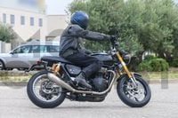 The cast front wheel being used in this test is a dead giveaway that many of the parts are from the modern Speed and/or Street Triple—not to mention the upside-down fork and beefy, radial-mount brake calipers. What’s not clear is just how retro this Speed’s style will be. Our sources say that Triumph might aim this at the growing trend of 1980s-styled streetfighters, meaning cast wheels and a host of other details that would land this bike’s aesthetic squarely between the modern triples and the classic Bonnevilles.