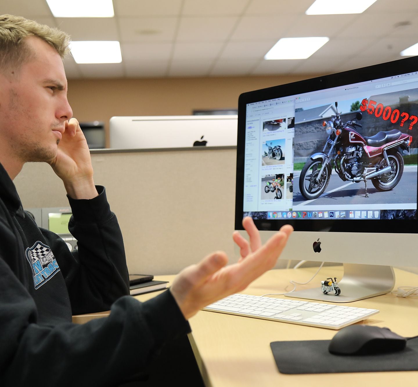 How else was the Vision's reputation earned? Let's count the ways: flambéd stators and regulator/rectifiers, oil-filled starters, starter clutch bolts that back out, and a leaky YICS box (don't ask) just to name a few of the more serious reliability issues. Pragmatists would just buy a Honda CB750 or Yamaha XS650, order café parts off the shelf and call it a day. There is nothing – nada – available to café your XZ550. So I started from scratch. First, I Photoshopped what I wanted the finished bike to look like. OK, easy part done. I found a non-runner on Craigslist. ("I guarantee it WILL run!" Good enough for me. "Hold my beer while I reach for my cash"). I carved the shape of the fuel tank out of florists' foam and had it fabricated in aluminum. I shortened the frame and cut new rails from an old steel folding chair. (Did I mention I was sticking to a budget?) When it was all welded up the back formed a point. OK, that's the way I wanted it. Then I fabricated a tail cowl –again from florists' foam – and fiberglassed it myself (first time!) I also found the courage to fabricate an aluminum seat pan.