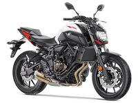 Resplendent in its neon-yellow (or blue or black) wheels, the MT-07 is a splashy and yet affordable entry point to middleweight naked bikes. Its edgy bodywork is intentionally spare, focusing attention on the bike’s mechanicals. These include a 689cc parallel twin nestled inside a tubular steel frame, a rakish 2-into-1 exhaust system, racing-style thin-spoke wheels, and a gull-wing swingarm. The motor turns a six-speed gearbox and chain final drive, and features a 270-degree crossplane crankshaft for good power delivery and an interesting sound and vibration character.