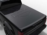 Additionally, the truck is packing upgrades like a BDS suspension lift with Fox shocks, BFG 37-inch KM3 tires, lighted running boards, custom fender flares, an integrated LED light bar in the customized grille, an induction-style hood, new rear bumper, and color-matched tonneau cover. There are entry sills, floor mats, carpeted bed mat, and accent colors throughout inspired by H-D.