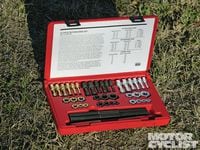 In addition, there are thread-repair kits. There really is no reason to cut threads—you just need something to clean and straighten them if they still have some integrity. Once you have thread-repair tools in your box, you will be surprised by how often you dig them out to “chase” threads or clean up a fastener that has been treated with a thread-locking compound. I keep the most common sizes in my racetrack toolbox, and a larger selection back at the shop.