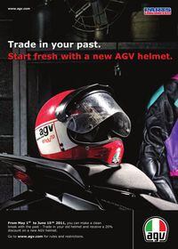 From May 1st to June 15th 2011 every motorcyclist in the USA can trade in their old helmet of any brand, for 20% MSRP off on the purchase of a new AGV helmet. This promotion is available to the public at all participating dealers.