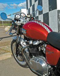 First ride on Hinckley's nostalgic, hot-rodded Bonneville cafe-racer motorcycle. From the June 2004 issue of Motorcyclist Magazine. By Roland Brown.