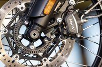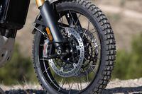The 1200 XE, the higher-spec, more off-road-worthy model, starts at $15,295—$900 less than the 2023 version. In place of the Showa fork and Öhlins shocks on the previous model, the new XE uses fully adjustable Marzocchi units with 9.8 inches of travel front and rear. Of note, the 45mm fork has hydraulic bump stops for increased bottoming resistance, while the new shocks use dual springs with three spring rates. Up-spec Brembo Stylema Monoblocks and larger 320mm discs up front further distinguish the XE model. For added stability off-road, it has more relaxed geometry and a 32mm-longer swingarm than the X. It also benefits from an additional Off-Road Pro ride mode, wider handlebars, a full TFT dash, cruise control, and backlit switch cube buttons.