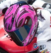 And, now that the race weekend is over, Melissa is auctioning off her special-edition Joe Rocket RKT-201 Carbon Fiber helmet that was painted by Nick Battaglia of Loose Cannon Customs (www.nickbattagliapaint.com). Melissa wore the helmet during Sunday's Daytona SportBike race. To bid on the one-of-a-kind, race-worn helmet, visit eBay and search for Item Number 140583780376 to place your bid.